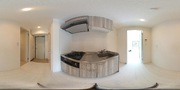 調理台、シンク、加熱調理器、レンジフード、収納庫などを一体化させたデザインのキッチン。オプションで機能を付け足すのに比べて見栄えも機能性も優れているのが特長です。画像提供:エイブル保証株式会社