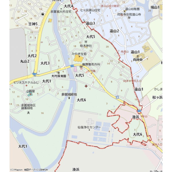 グリーンパーク大代 2階/宮城県多賀城市大代6丁目の周辺施設を地図に表示