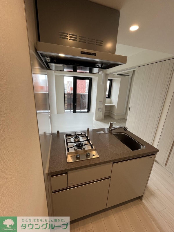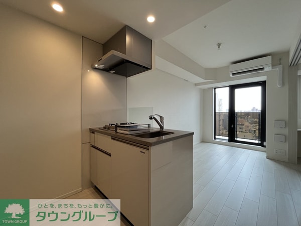 調理台、シンク、加熱調理器、レンジフード、収納庫などを一体化させたデザインのキッチン。 オプションで機能を付け足すのに比べて見栄えも機能性も優れているのが特長です。 画像提供:エイブル保証株式会社