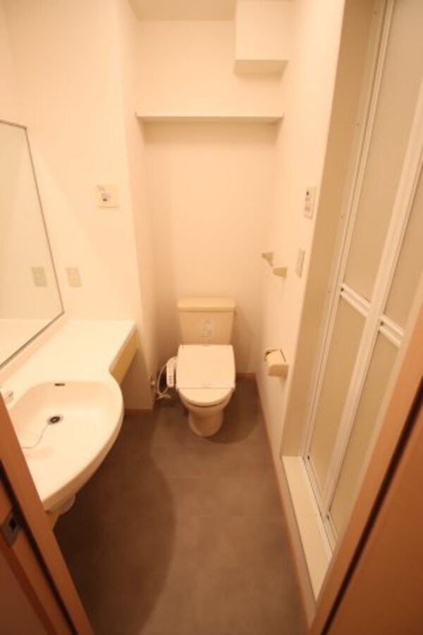 温水洗浄機能が付いた便座。温水で洗う事によりトイレットペーパーの消費量を抑えることができ、汚れも落ちやすくなり衛生的!
