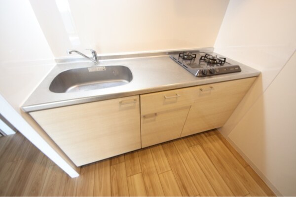 調理台、シンク、加熱調理器、レンジフード、収納庫などを一体化させたデザインのキッチン。オプションで機能を付け足すのに比べて見栄えも機能性も優れているのが特長です。画像提供:エイブル保証株式会社