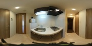 調理台、シンク、加熱調理器、レンジフード、収納庫などを一体化させたデザインのキッチン。オプションで機能を付け足すのに比べて見栄えも機能性も優れているのが特長です。画像提供:エイブル保証株式会社