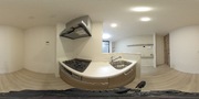 調理台、シンク、加熱調理器、レンジフード、収納庫などを一体化させたデザインのキッチン。オプションで機能を付け足すのに比べて見栄えも機能性も優れているのが特長です。画像提供:エイブル保証株式会社