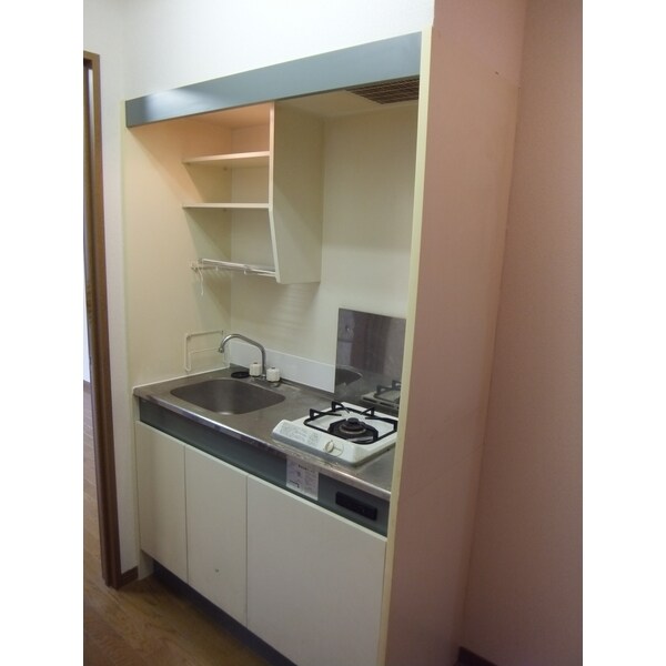 調理台、シンク、加熱調理器、レンジフード、収納庫などを一体化させたデザインのキッチン。オプションで機能を付け足すのに比べて見栄えも機能性も優れているのが特長です。画像提供:エイブル保証株式会社