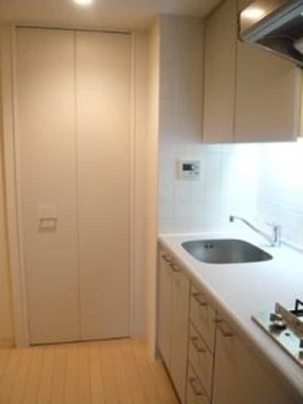 調理台、シンク、加熱調理器、レンジフード、収納庫などを一体化させたデザインのキッチン。オプションで機能を付け足すのに比べて見栄えも機能性も優れているのが特長です。画像提供:エイブル保証株式会社