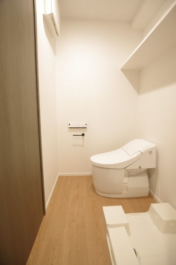 温水洗浄機能が付いた便座。温水で洗う事によりトイレットペーパーの消費量を抑えることができ、汚れも落ちやすくなり衛生的!