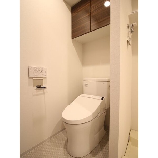温水洗浄機能が付いた便座。温水で洗う事によりトイレットペーパーの消費量を抑えることができ、汚れも落ちやすくなり衛生的!