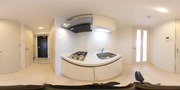 調理台、シンク、加熱調理器、レンジフード、収納庫などを一体化させたデザインのキッチン。 オプションで機能を付け足すのに比べて見栄えも機能性も優れているのが特長です。 画像提供:エイブル保証株式会社