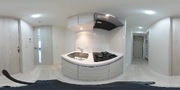 調理台、シンク、加熱調理器、レンジフード、収納庫などを一体化させたデザインのキッチン。オプションで機能を付け足すのに比べて見栄えも機能性も優れているのが特長です。画像提供:エイブル保証株式会社