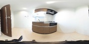 調理台、シンク、加熱調理器、レンジフード、収納庫などを一体化させたデザインのキッチン。オプションで機能を付け足すのに比べて見栄えも機能性も優れているのが特長です。画像提供:エイブル保証株式会社