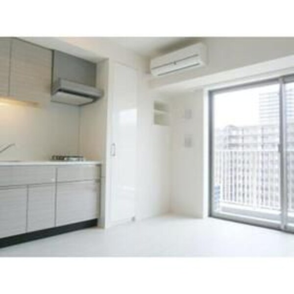 調理台、シンク、加熱調理器、レンジフード、収納庫などを一体化させたデザインのキッチン。オプションで機能を付け足すのに比べて見栄えも機能性も優れているのが特長です。画像提供:エイブル保証株式会社