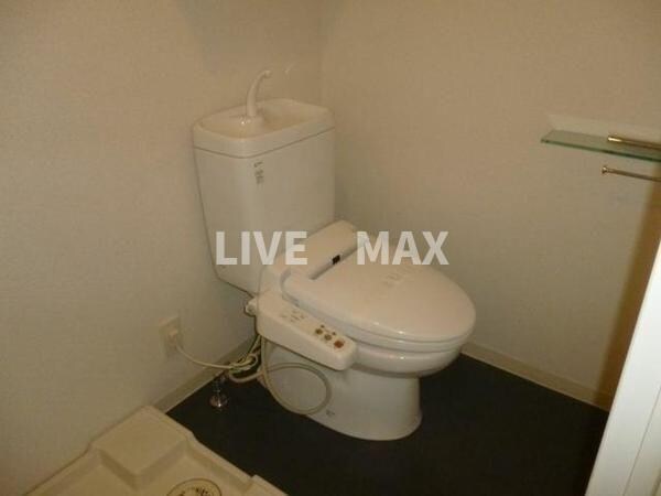 温水洗浄機能が付いた便座。温水で洗う事によりトイレットペーパーの消費量を抑えることができ、汚れも落ちやすくなり衛生的!