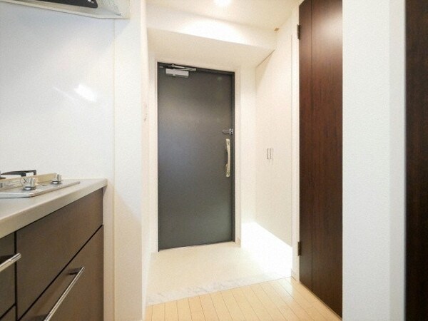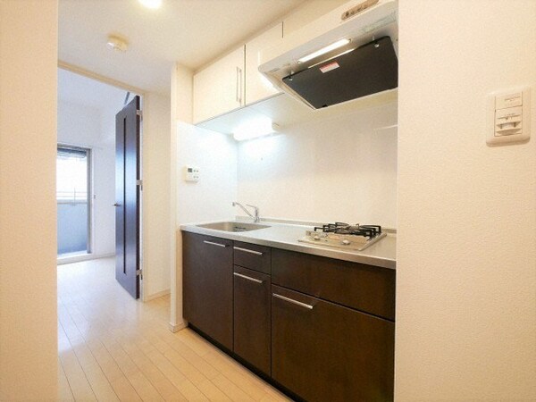 調理台、シンク、加熱調理器、レンジフード、収納庫などを一体化させたデザインのキッチン。オプションで機能を付け足すのに比べて見栄えも機能性も優れているのが特長です。画像提供:エイブル保証株式会社