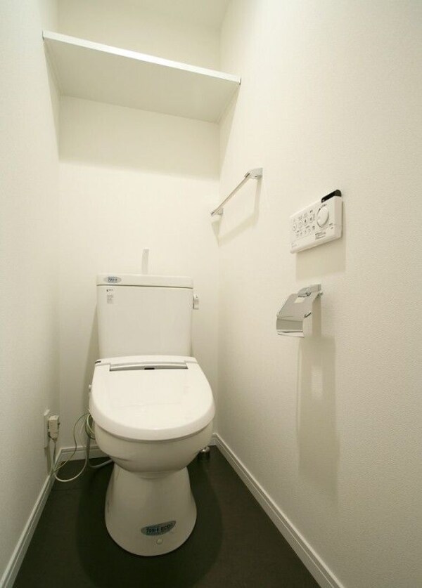 温水洗浄機能が付いた便座。温水で洗う事によりトイレットペーパーの消費量を抑えることができ、汚れも落ちやすくなり衛生的!
