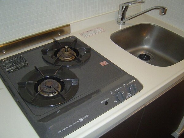 調理台、シンク、加熱調理器、レンジフード、収納庫などを一体化させたデザインのキッチン。オプションで機能を付け足すのに比べて見栄えも機能性も優れているのが特長です。画像提供:エイブル保証株式会社