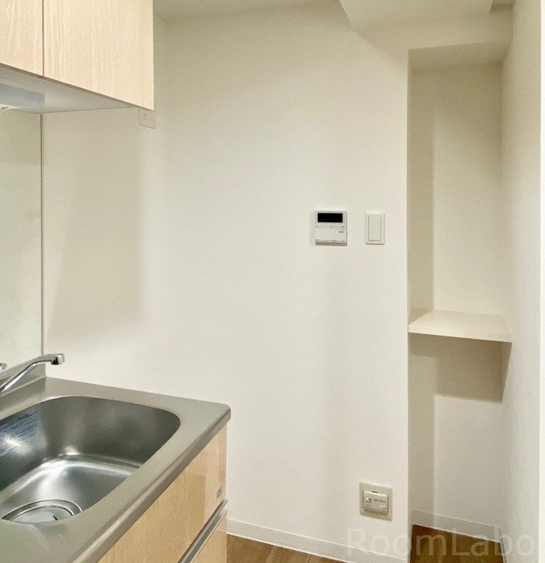 調理台、シンク、加熱調理器、レンジフード、収納庫などを一体化させたデザインのキッチン。オプションで機能を付け足すのに比べて見栄えも機能性も優れているのが特長です。画像提供:エイブル保証株式会社