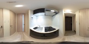 調理台、シンク、加熱調理器、レンジフード、収納庫などを一体化させたデザインのキッチン。オプションで機能を付け足すのに比べて見栄えも機能性も優れているのが特長です。画像提供:エイブル保証株式会社